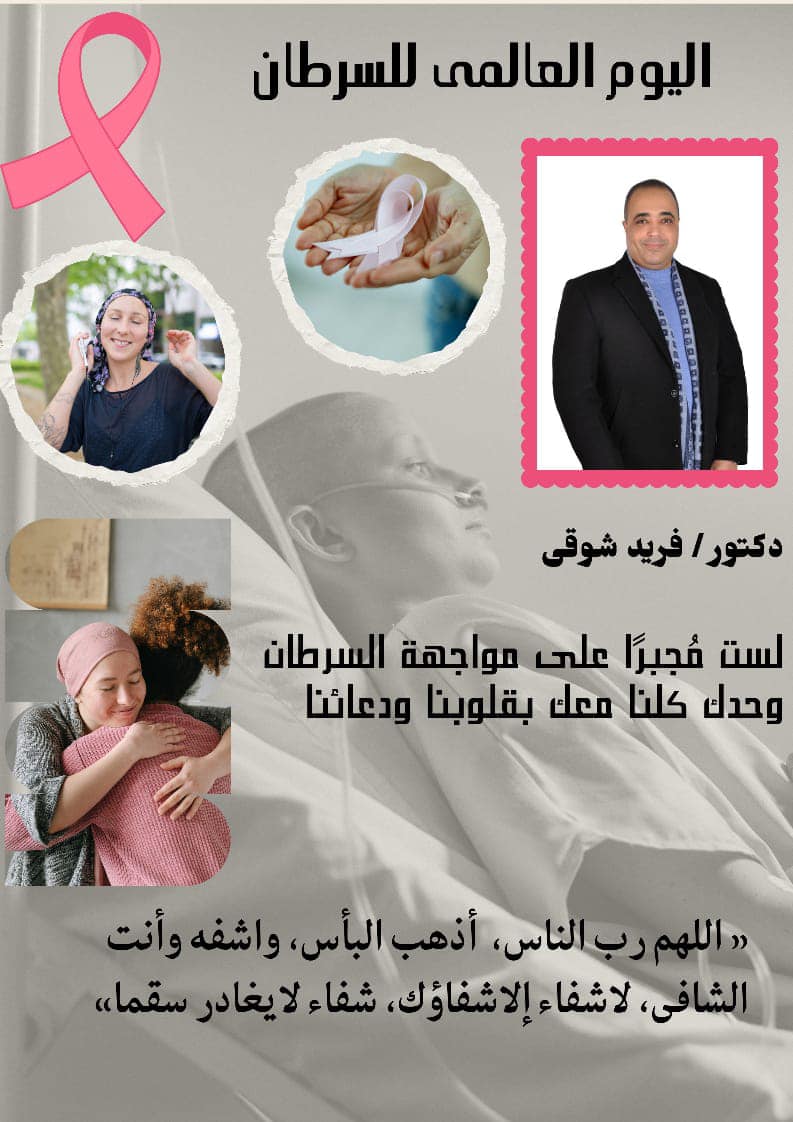 في اليوم العالمي لمرض السرطان.. د. فريد شوقي يوجه رسالة دعم مؤثرة: "أنت بطل حقيقي وقوتك في إصرارك"