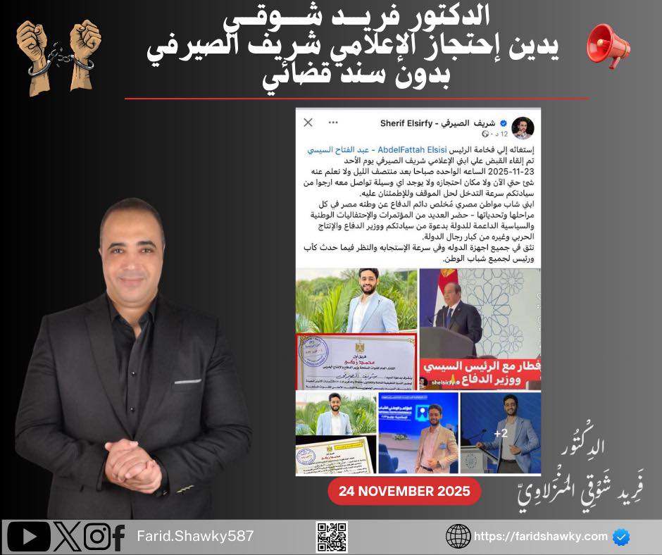 بيان صحفي لـ د. فريد شوقي – عضو منظمة العفو الدولية والمفكر والمحلل السياسي حول غياب الرئيس عبد الفتاح السيسي عن قمة الرياض الأخيرة