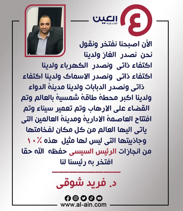 في ذكرى ثورة 30 يونيو.. د. فريد شوقي: كل عام ومصر ورئيسها بخير وأمان