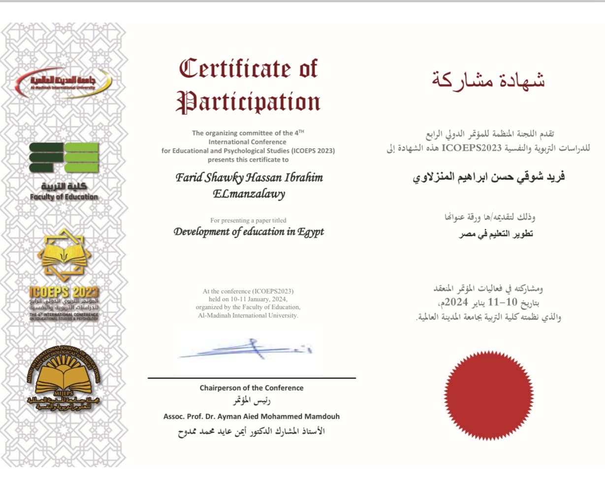 يشارك الدكتور فريد شوقي في المؤتمر التربوي الدولي الرابع للدراسات التربوية والنفسية