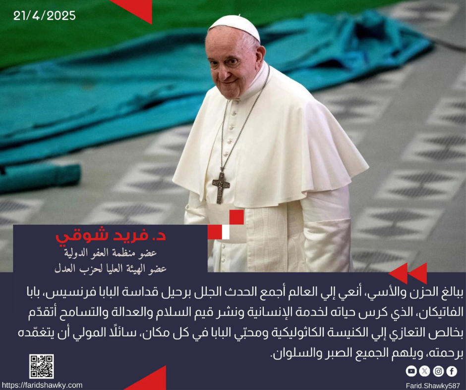 الدكتور فريد شوقي المنزلاوي ينعى رحيل قداسة البابا فرنسيس