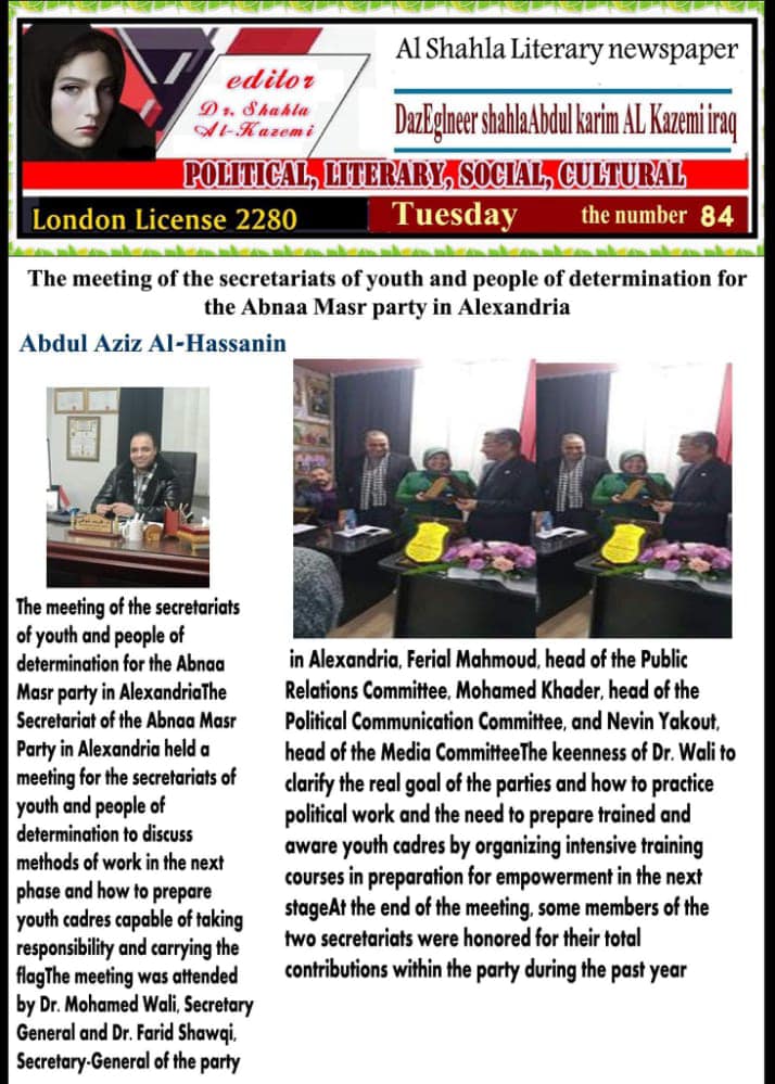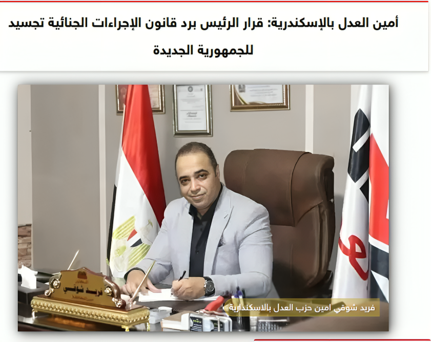 بيان صحفي حزب العدل – أمانة الإسكندرية تحت رعاية الدكتور فريد شوقي – أمين محافظة الإسكندرية