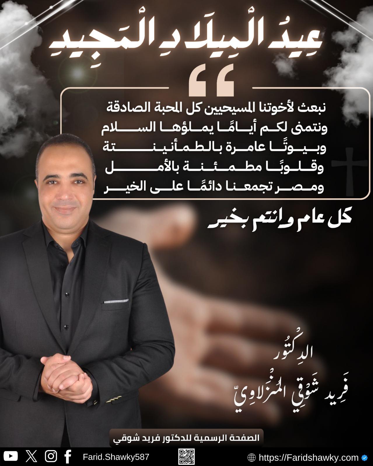 "ميلاد معنى أكبر من الاختلاف".. المفكر د. فريد شوقي يسطر رؤية فلسفية في عيد الميلاد المجيد